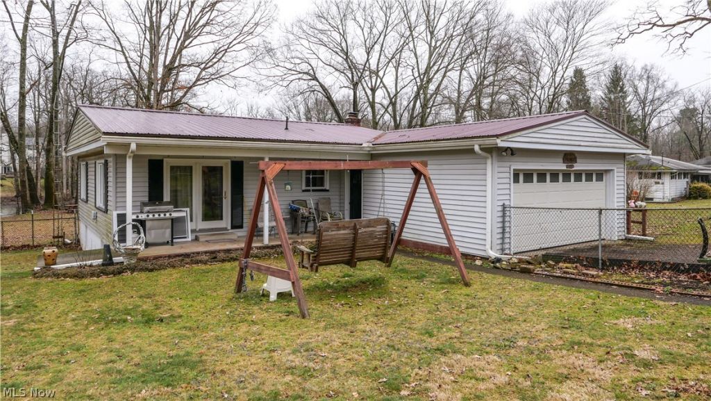 Discover peaceful riverfront living in this beautiful ranch home located in a highly sought-after area with the Cuyahoga River right in your backyard! This charming home offers classic character with wood floors throughout (and preserved beneath the carpet) and a layout that provides both comfort and flexibility. The spacious living room is filled with natural light and overlooks the scenic backyard and river, creating a relaxing setting year-round. Built-in cabinetry with leaded glass doors adds timeless charm and storage to the main living space. On one side of the home you'll find three comfortable bedrooms and a full bathroom, while the opposite side features a private in-law suite with its own entrance, additional kitchen, bedroom, and bathroom, perfect for guests, extended family, or multi-generational living. The large walk-out basement provides incredible storage and future potential, already featuring a bedroom and plenty of space that could easily be finished for additional living areas. Recent updates including a durable metal roof and newer windows add peace of mind. If you're looking for a property that combines scenic river views, flexible living space, and a desirable location, this one is truly worth seeing in person.